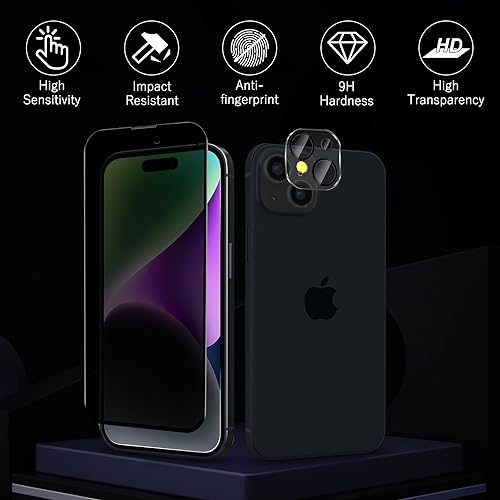 【Modelli compatibili】: Appositamente progettato per iPhone 15 6,1". 2 Pezzi Privacy Pellicola Protettiva Vetro Temperato + 2 Pezzi Pacchetto di installazione. Mantieni il tuo telefono completamente protetto.