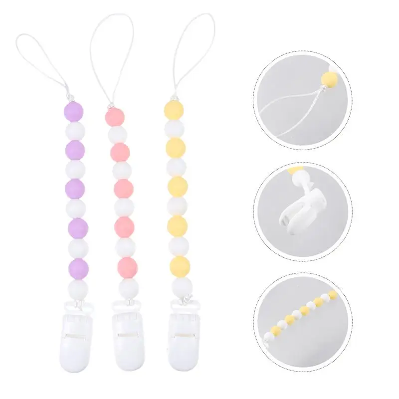3pcs Baby Pacifier Chains Infant Soother Chains Silicone Pacifier Clip Chain Baby Soft Soother Pacifier Chain Holder Gift