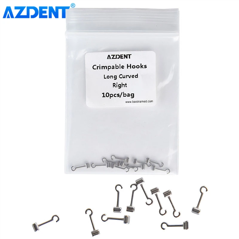 5 Packs AZDENT Dental Orthodontic Crimpable Hooks Extended Traction Hook Long Curved Left Right 10pcs/Pack
