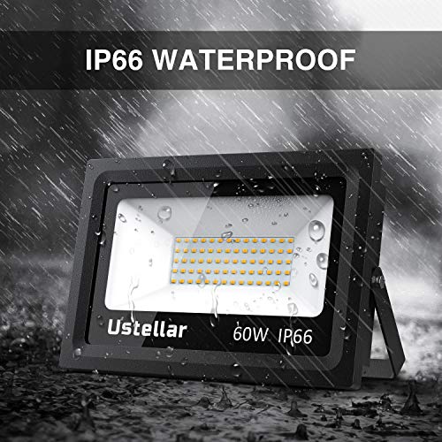 2 Packs Ustellar 60W Faro LED Esterno, Equivalenti a 300W, Faretto LED Bianco Freddo 5000K, Impermeabile IP66, Ideale per Edificio, Garage, Giardino, Passaggio (Bianco Caldo)