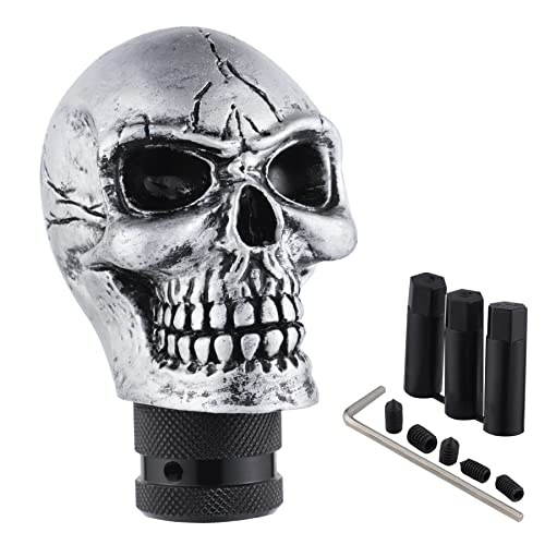 Padaodao Skull Gear Shifter Head Devil Shifting Handle Pomello del cambio Leva del cambio, Accessori automobilistici per la maggior parte delle auto automatiche manuali per camion, SUV, argento