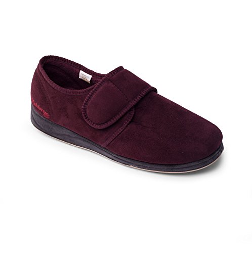 Padders, Charles, pantofole con velcro, in microfibra scamosciata, grandi, color boudeaux