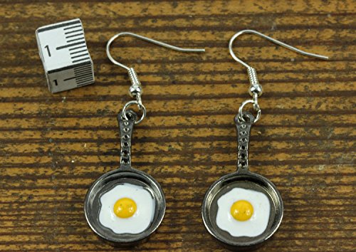 Padella con orecchini uovo fritto Miniblings pan pentole d'uovo in metallo antracite
