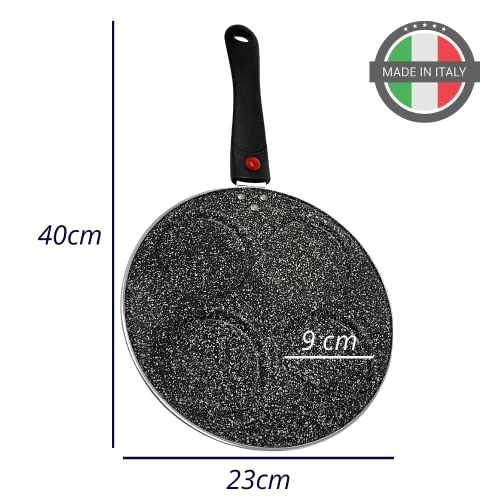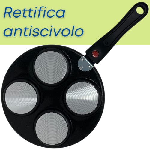TVS Padella per Pancakes Antiaderente Padella per Uova, Piastra per Pancake con 4 Stampi Incorporati Alluminio Pressofuso, Nera,23 cm Diametro Stampo 9 Centimetri Manico Removibile Nero