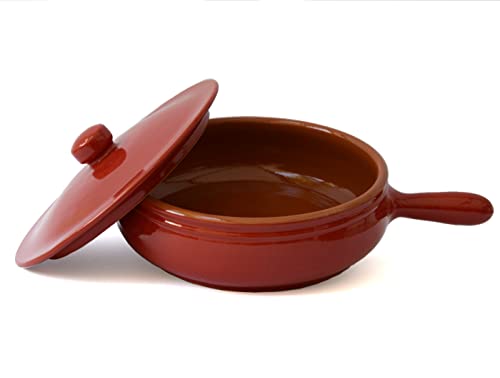 Padella Rossana con Coperchio, Casseruola in Terracotta, Padella per stufati, Colì Maioliche e Terrecotte dal 1650, Rosso, diametro 24 cm
