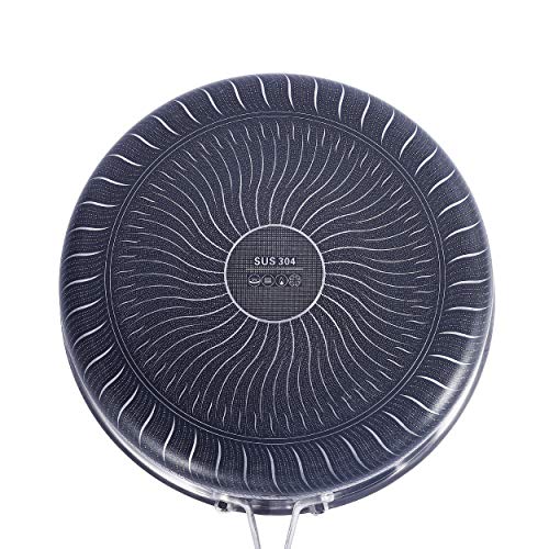 Padella con coperchio in vetro temperato: il coperchio in vetro temperato ventilato mantiene abbastanza calore e umidità, mantenendo la visibilità per garantire che ogni pasto raggiunga la cottura perfetta, rendendolo delizioso. La base composita a 7 strati ha un'elevata resistenza all'abrasione e non ingiallisce: minor punto di fumo dell'olio e copertura completa delle reti interne ed esterne a nido d'ape, per una durata eccellente della padella.