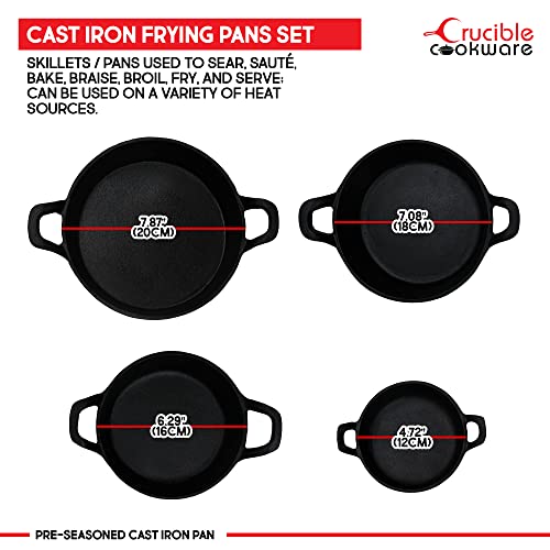 Padelle in ghisa Set di 4 padelle (pre-condite) per servire, cucinare e cuocere al forno 20 cm - 12 cm, Forno Sicuro Forme | Uso interno ed esterno