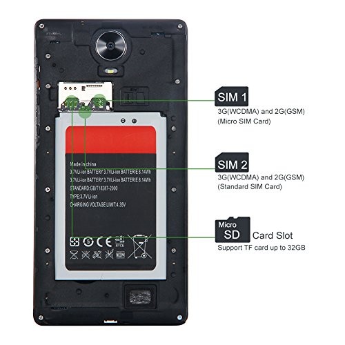 Padgene R8 Smartphone Handy con 6 pollici IPS Diaplay e Android 5.1 - MTK6580 Quad Core 1,3 GHz, 1 GB di ROM e 8 GB di RAM, Dual SIM (doppio uso), doppia fotocamera (2,0 m/5.0 m), WiFi GPS G-sensor di SIM libero 2 G/3 G il cellulare phablet multicolore Dunkel Blau