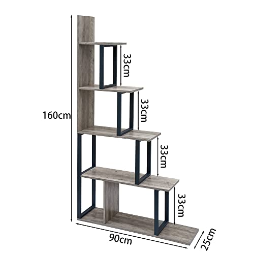 PADMA HOUSE Libreria con 5 ripiani, a forma di L, scala autoportante, libreria ad angolo aperto, scaffale multiuso (grigio premium)