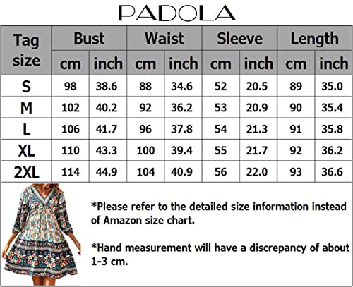 PADOLA Vestito Donna Elegante Vestiti Estivi Estivo Corto Primavera Style Boheme Vestiti Abiti Abito da Spiaggia Casual Scollo a V Maniche Lunghe(Gialla, M)