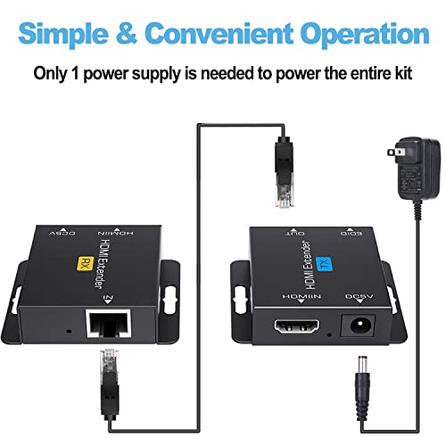 Estensore HDMI 1080P 196 ft: questo estensore HDMI plug and play trasmette sia video ad alta risoluzione che audio di alta qualità fino a 196 metri tramite cavo CAT5e/6/7. Supporta una risoluzione fino a 1080p@60Hz, supporta 3D. Nessuna riproduzione video, ideale per progetti all'aperto o al chiuso e videoconferenze