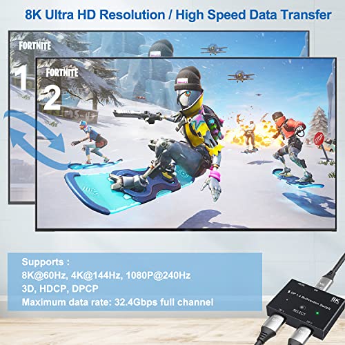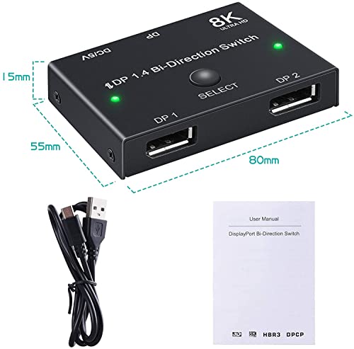 Risoluzione 8K Ultra HD: questo commutatore DisplayPort a 2 porte supporta risoluzioni da 8K a 60 Hz, 4K a 120 Hz e 1080P a 240 Hz. Supporta audio 3D e HD;