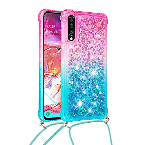Paekear Custodia per Cellulare con Corda per Samsung Galaxy A70 Case, Liquido Sabbie Mobili Bumper TPU Cover con Collana Practical Stylish/Necklace Cordoncino Cordino Tracolla
