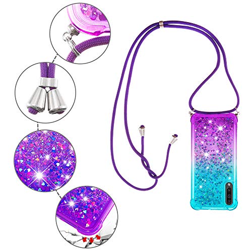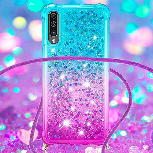 Paekear Custodia per Cellulare con Corda per Samsung Galaxy A7 2018 / A750 Case, Liquido Sabbie Mobili Bumper TPU Cover con Collana Practical Stylish/Necklace Cordoncino Cordino Tracolla, Blu & Viola