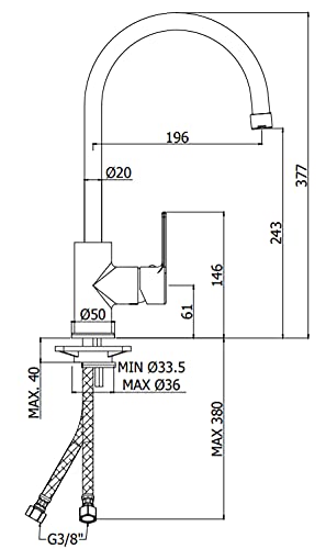 Paffoni Lavello RED Miscelatore lavello canna tubo Ombrello SMALL D.20