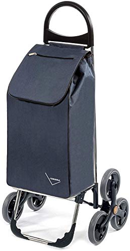 La struttura con base richiudibile e' realizzata in alluminio 100% che rende il carrello leggero e pratico da usare. La maniglia ergonomica ha l'impugnatura in polipropilene. Borsa in nylon, lavabile in lavatrice, pratica tasca interna con cerniera.