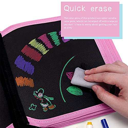 14 Pagine Portatile da Disegno per Bambini, ZoneYan Libro Cancellabile Bambini, Doodle Disegno Giocattoli, Blocco da Disegno Cancellabile per Bambini, con 12 Gessetti Acquerellati