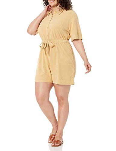 The Drop, pagliaccetto da donna a maniche corte Azelia in tessuto di spugna e cotone, giallo cagliata, XS