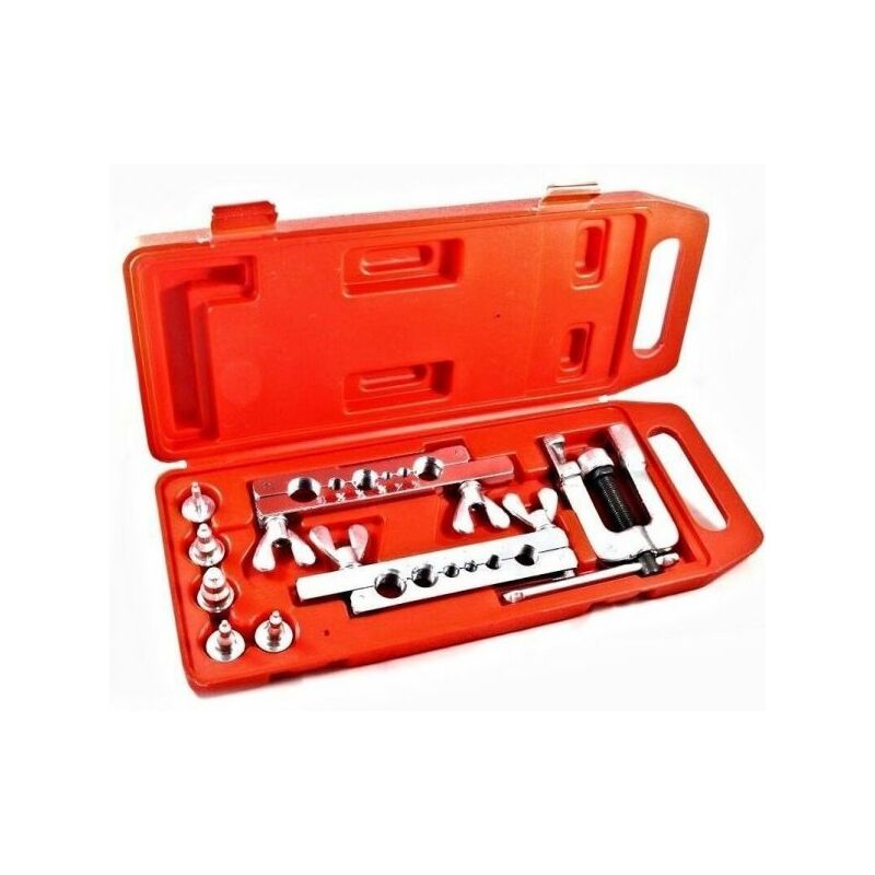 Descrizione prodotto PAGLIETTATRICE SVASATUBI SVASATRICE SVASA TUBI CON 10 ACCESSORI IN VALIGETTA Set in valigetta con pagliettatrice svasatrice per tubi, per allargare fori o filettature. Composto da pagliettatrice, 5 accessori 3/16 - 1/4 - 3/8 - 1/2 - 5/8. Accessorio per fori 18mm, 6mm, 8mm, 10mm, 15mm Accessorio per filettature. Il tutto come mostrato in foto, quindi con una pratica valigetta per poter portare questo utensile molto utile nel campo dell'idraulica sempre con voi con il minimo ingombro. Dopo il suo utilizzo riposto nella pratica valigetta potrete sistemarlo nel vostro magazzino o deposito o garge occupando pochissimo spazio e evitando così di smarrire componenti utili per il suo utilizzo.