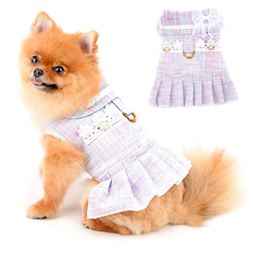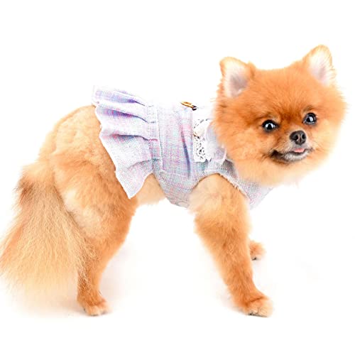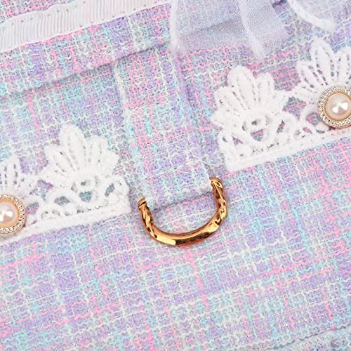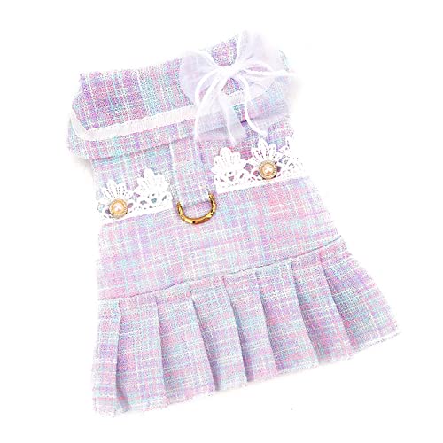 DESIGN E CARATTERISTICHE -- 1.) Fili colorati Filatura a quadri mescolata con gonna a pieghe con design in filo di seta dorata, con ampio collo a scialle rovesciato. 2.) Bellissimo fiocco di filato e decorazione in pizzo. 3.) Morbido pile completamente foderato, design classico con fibbie con bottoni, facile da indossare e da togliere. 4.) Indietro con anello a D, praticità per il guinzaglio, nessuna strozzatura, nessuna trazione, più comodo. 5.) 2 colori tra cui scegliere.
