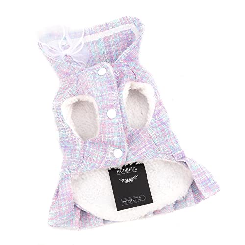 PAIDEFUL Cappotto di Lana per Cani di Piccola Taglia Ragazze Lusso Dolce Plaid Colorato Morbido e Caldo Chihuahua Abbigliamento Invernale per Cuccioli Piccoli Gonna Gatti Abiti Autunno Freddo Viola M