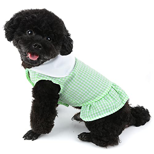 PAIDEFUL Scozzese Abito per Cani di Piccola Taglia Gatti Ragazze Gilet in Cotone Morbido Tee Gonna con Bretelle Canotte Traspiranti Cucciolo Chihuahua Vestiti Yorkie Magliette Estate Verde S