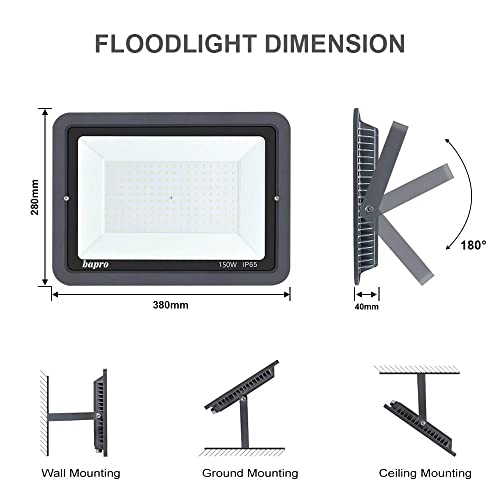 Paideste 150W Led Proiettore esterno, 15000LM LED Luce di sicurezza, Nuovo aggiornato impermeabile IP65 lampada esterna, 3000K caldo bianco esterno luci giardino garage magazzino parcheggio cortile
