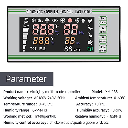 PAIDUOJI Termostato digitale Regolatore Multifunzione per Incubatore Incubatore di Uova di Piccola Dimensione xm-18 (xm-18S)