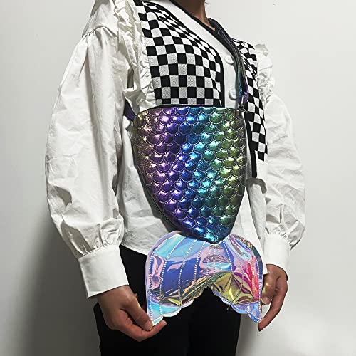 ❤ La borsa è realizzata in pelle ecologica in poliuretano, che brilla al sole, è molto adatta da portare in spiaggia, come una sirena in mare.