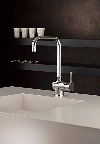 Paini - Rubinetto Miscelatore Monocomando Cucina, Lavello, Cromato, Leva laterale con bocca alta orientabile, Canna ad angolo, Design moderno interamente prodotto e lavorato in Italia