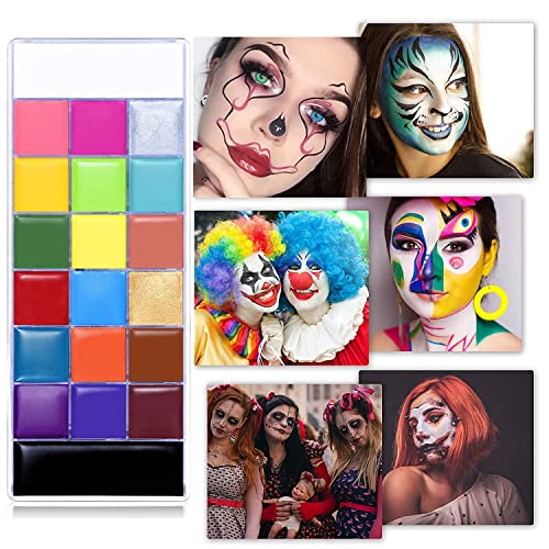 【20 colori vivaci】Eccellente resa dei colori e prestazioni. Il nostro set di oli colorati per il viso contiene 20 colori vivaci, 10 pennelli viola lisci, 2 spugne e 5 struccanti. Questi colori sono toni spessi e cremosi che coprono perfettamente la pelle. La vernice colorata e resistente soddisfa le esigenze di pittori professionali e principianti.