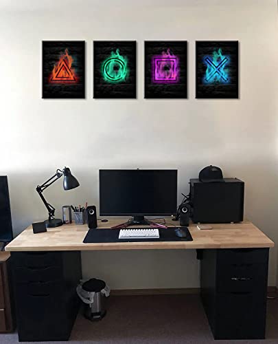 PIY PAINTING Quadro su Tela, Quadro Decorazione Console di Gioco Gamer, Stampe da Parete, Stampe e Quadri su Tela geometriche con fiamme con Telaio per Casa, Camera da Decorazione, 30x40cm, 4 Pezzi