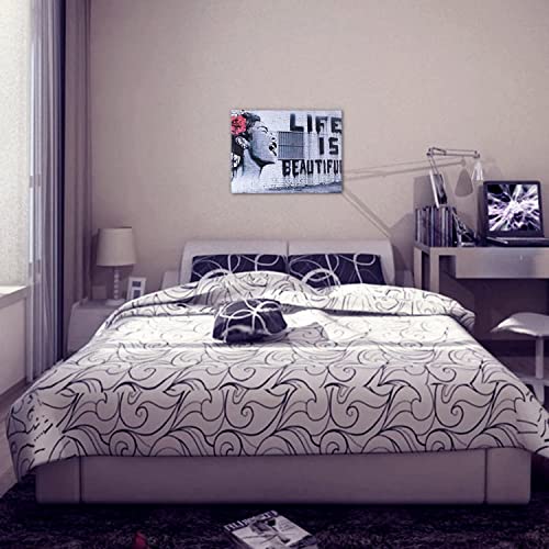 Piy Painting Quadro su Tela Stampa Disegno su Tela Canvas Impermeabile Bansky Stile “La Vita è Belle”Decorazioni per Camera da Letto Soggiorno Camera da Pranzo Cucina 30x40cm
