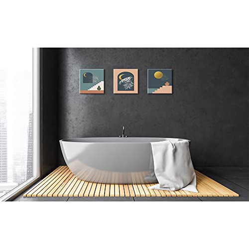 Piy Painting Set da 3 Stampe e quadri su tela in stile nordico sole e luna astratto paesaggio arte stampe su Sfondo arancione e verde Quadro Decorazione Murale per Casa Ufficio Lounge Sala SPA 30x30cm