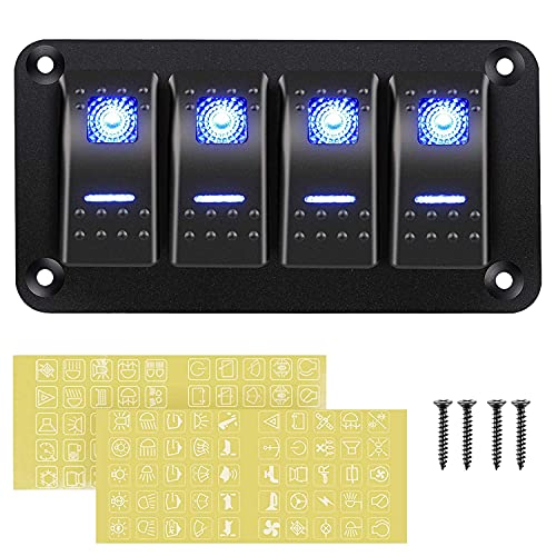 PAIRIER 4 Gang Pannello Interruttore a Bilanciere con Luce LED Blu 12V / 24V Interruttore a Levetta a 5 Pin Impermeabile per Auto, Barche, Yacht, Roulotte, Camion