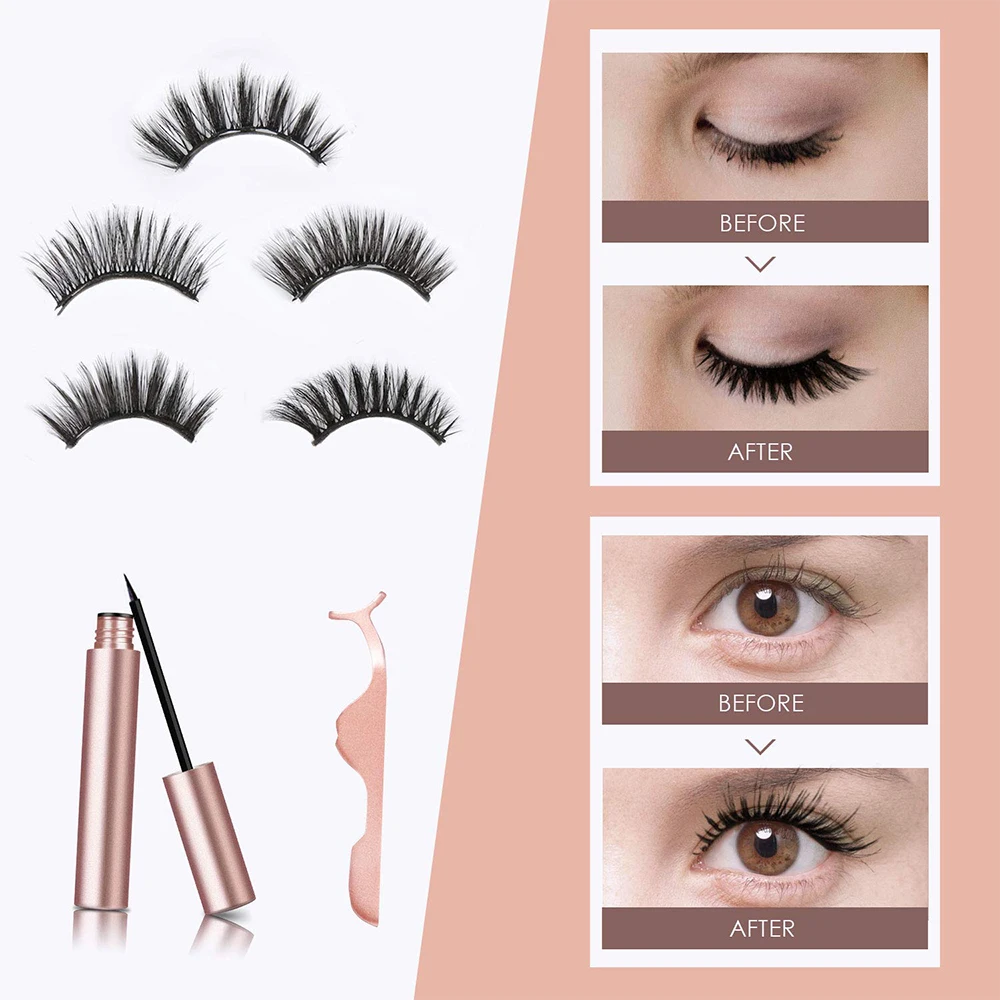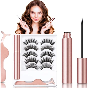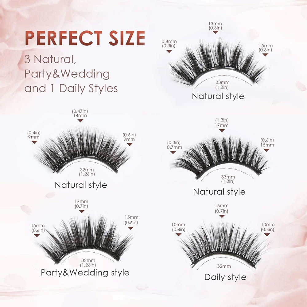 5 Pairs False Magnetic Eyelashes Kit Faux Mink Eyelashes with Eyeliner Reusable Volume Eyelashes Kit Natural Look Long Tweezer