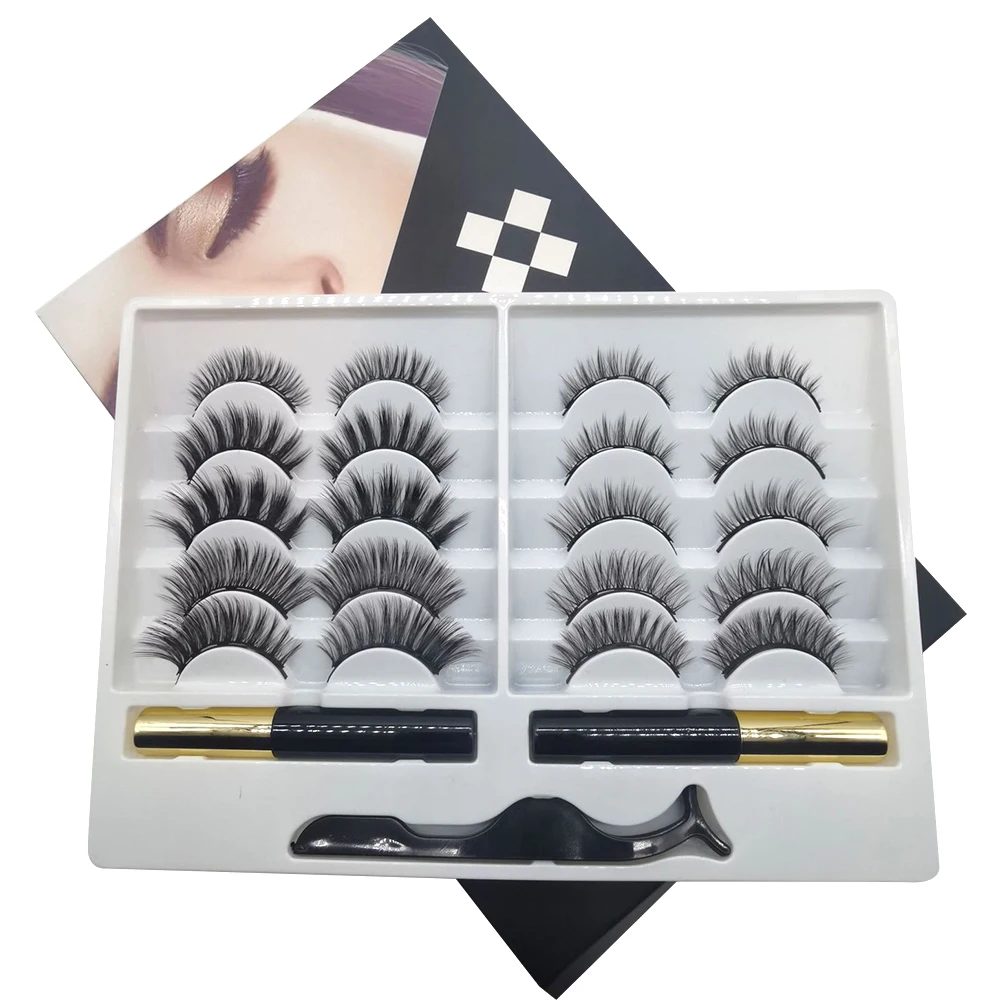 5/10 Pairs Magnet Eyelash Set Magnetic Liquid Eyeliner Magnetic False Eyelashes Tweezers 8D Mink False Eyelash Handmade Makeup