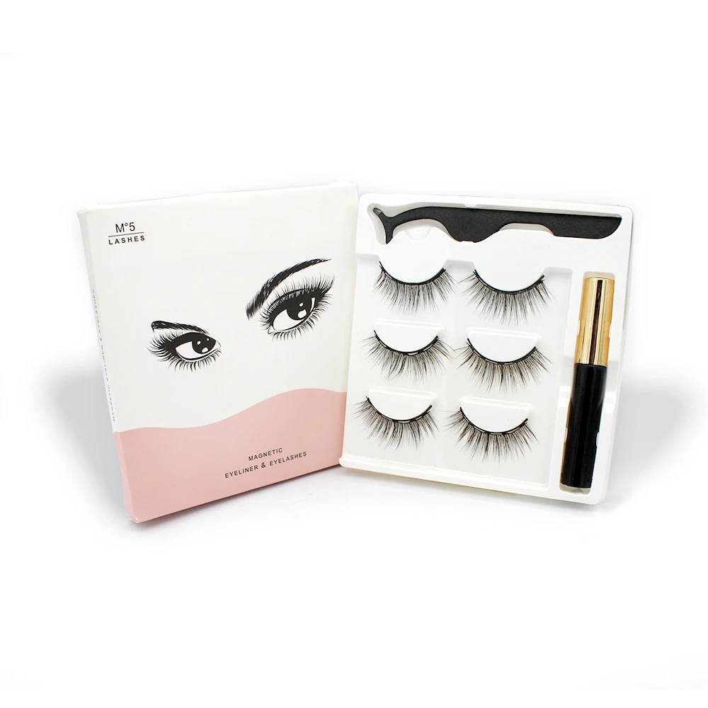 3 Pairs Magnetic Eyelashes Natural long Magnetic Eyeliner Magnetic False Eyelashes Tweezer Set Makeup Set Eyelash Extension