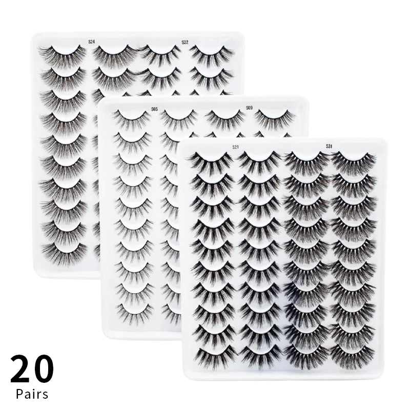 20 Pairs Mixed Set Natural Mink Eyelashes False Lashes Thick Fluffy Long Eye Lashes Makeup Beauty Extension Tools