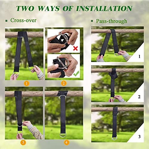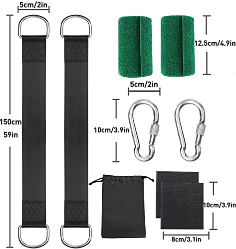 Paittesllly Set di fissaggio per altalena, set di fissaggio per amaca, altalena, altalena, kit con 2 moschettoni pesanti e anelli a D per giardino e esterni (1,5 m x 2)