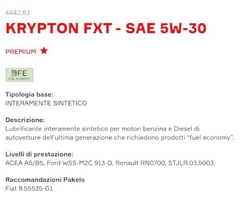 Pakelo 4 LT Olio LUBRIFICANTE per Auto Motore Sintetico Krypton FXT 5W-30