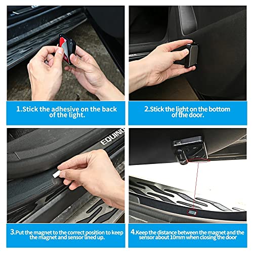 Installazione semplice: nessuna perforazione richiesta, nessun cablaggio richiesto. Interruttore a induzione magnetica, la luce della porta dell'interruttore si accende e si spegne automaticamente, risparmiando energia. Facile da installare e non danneggerà affatto la tua auto. Alimentato da 3 batterie AAA (non incluse).