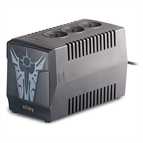 NJOY Paladin 1000 Stabilizzatore di Tensione 1000VA AVR 500W Monofase, Stabilizzazione ± 10%, 3 Uscite Schuko, 500 Watt, Dispositivo di Protezione da Sovratensione e Sottotensione