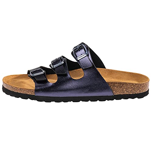 Palado Ciabatte da donna Capri - Sandali con plantare in sughero naturale - Scarpe comode con cinghie regolabili - Outdoor & Pantofole con suola in pregiata pelle scamosciata, blu metallico, 39 EU