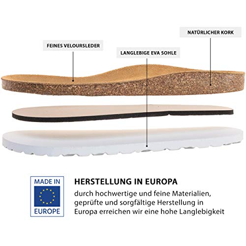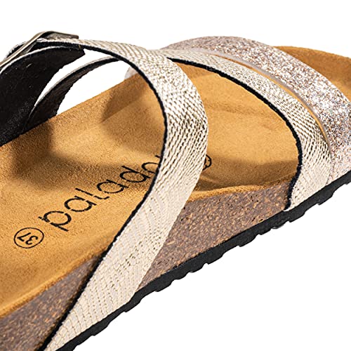 Palado Cios - Cios, pantofole da donna con cinturino regolabile, sandali con suola in pregiata pelle scamosciata, con plantare in sughero naturale, Pyth Gold, 42 EU
