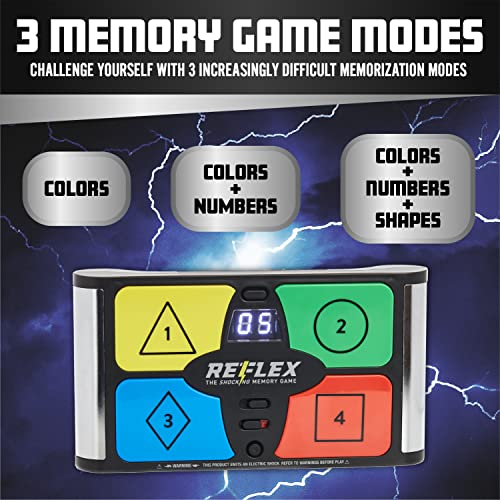 USO INTENDED: Reflex è un gioco di shock elettrico solo per ragazzi e adulti, non per bambini di età inferiore ai 14 anni. La funzione di shock può essere disattivata quando la nonna vuole giocare. 3 batterie AAA, NON INCLUDED.