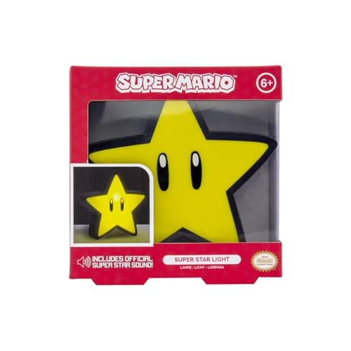 Paladone Star with Sound BDP | Licenza Ufficiale Super Mario Nintendo Night Light | Regalo Perfetto per Giocatori | 12 cm di Altezza 3 batterie AAA, Giallo, 12cm Tall