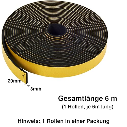 Palazen Nastro sigillante autoadesivo per porte, finestre, 20 mm (larghezza) x 3 mm (diametro), in gomma espansa come guarnizione per porte e finestre, paraspifferi in gommapiuma, colore nero [1