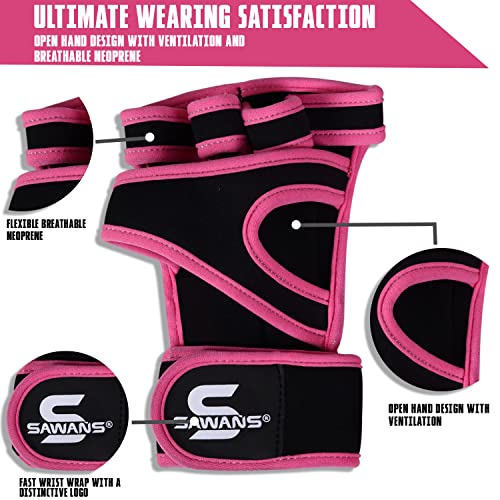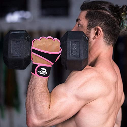 Palestra Fitness Guanti da allenamento aperti per sollevamento pesi, antiscivolo e imbottiti, per uomini e donne, supporto per il polso per trazioni, powerlifting, allenamento calisthenics (M, rosa)