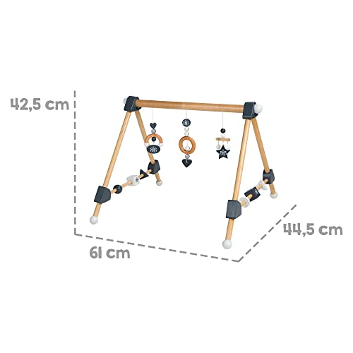 3 ANELLI E VARIE FIGURINE: L'archetto da gioco in legno offre molte cose da scoprire, toccare e afferrare per il tuo bebè, stimolando la sua memoria e le sue capacità motorie